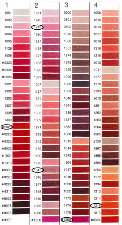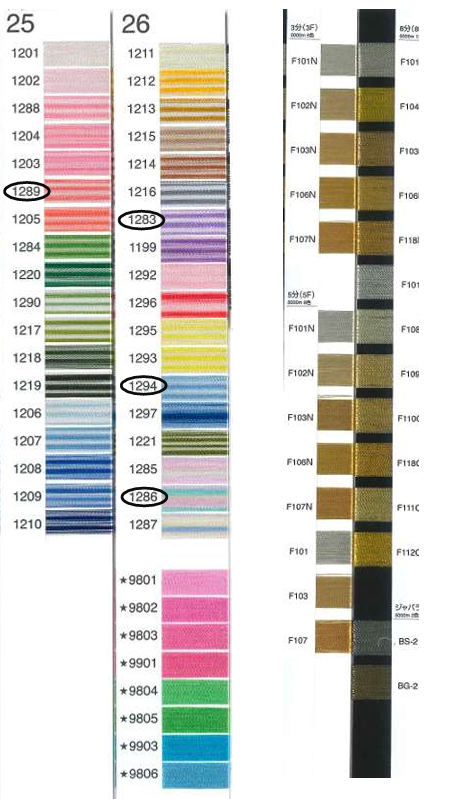 ※カラーイメージにつき実際の刺繍糸とは色味が若干異なる場合がございますので予めご了承くださいませ。またご覧いただいている画面の環境により色味が異なる場合もございます。